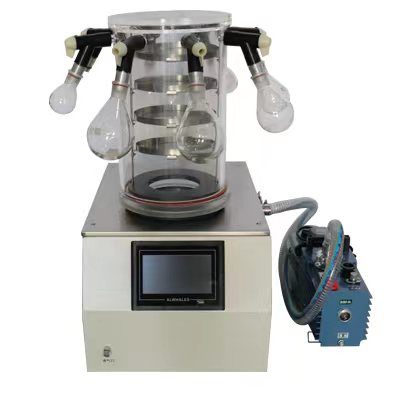 臺式凍干機(1臺)、真空泵(1臺)2XZ-2/2XZ-4可選、玻璃罩(1個(gè))、不銹鋼樣品架(1個(gè))、不銹鋼樣品盤(pán)(4-6個(gè))、真空連接管(1根)、橡膠閥(8個(gè))、凍干瓶(8支)、茄形瓶規格:100ml、250ml、500ml、1000ml(可選)